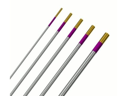 Fialová (tyrkysová) wolframová elektroda = WS20 - vzácné zeminy 2%. Použití pro lehké slitiny (AC proud), ocel a nerez oceli (DC proud).