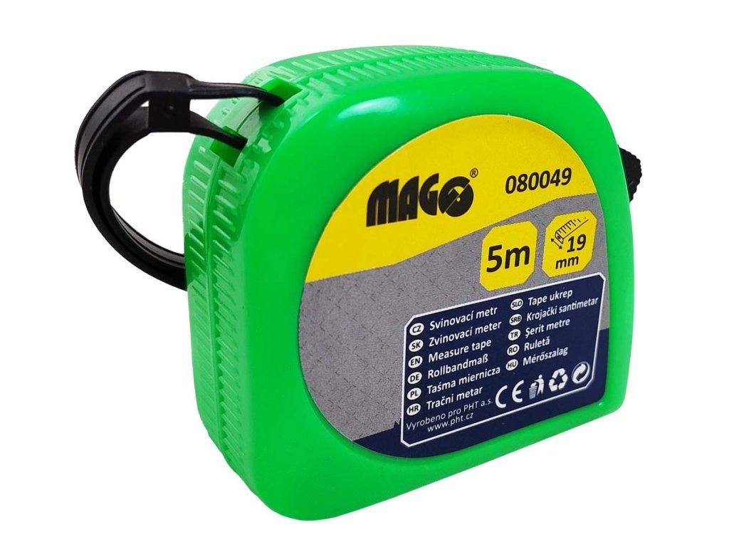 - metr má praktický klip na opasek, tudíž vám metr nikde nepřekáží a neztratí se