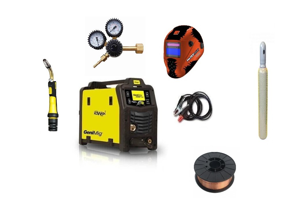 Svářečka CO2 Kowax GeniMig 240 DP LCD - VÝHODNÝ SET ( svářečka, hořák, kabely, redukční ventil, drát CO2 5 kg, plná lahev CO2 )