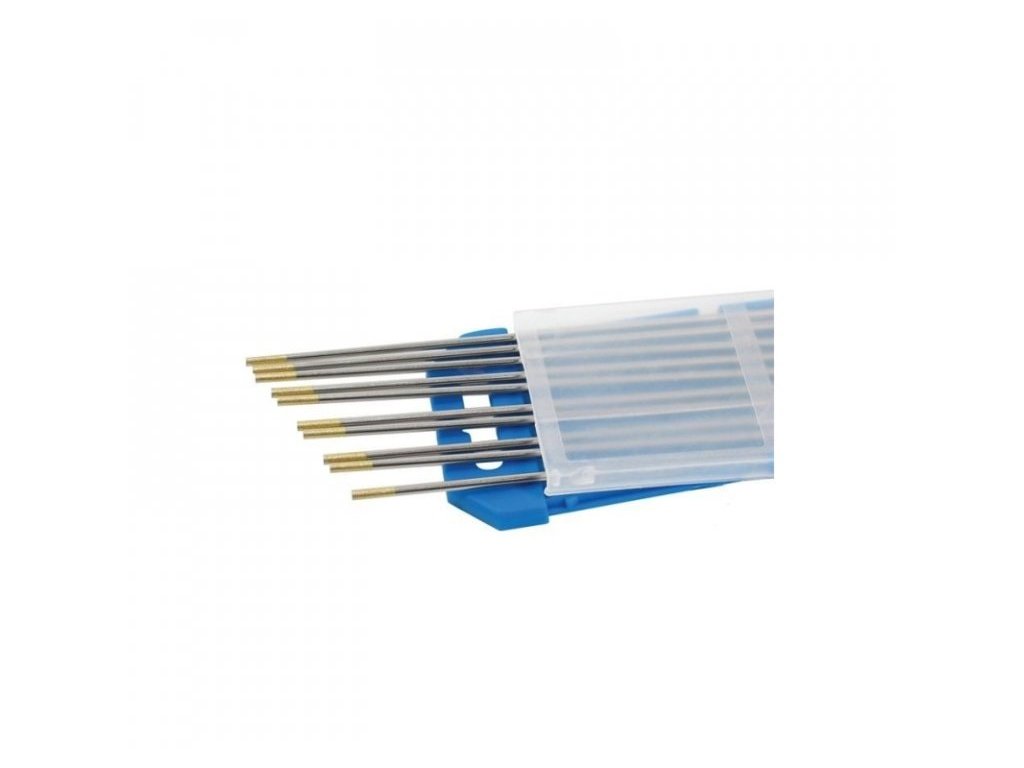 Zlatá wolframová elektroda = WL15 - Lanthan 1,5%. Použití pro hliník, slitiny hliníku, uhlíkové a nerez oceli, křemíkový a ostatní bronz, měď, titan.